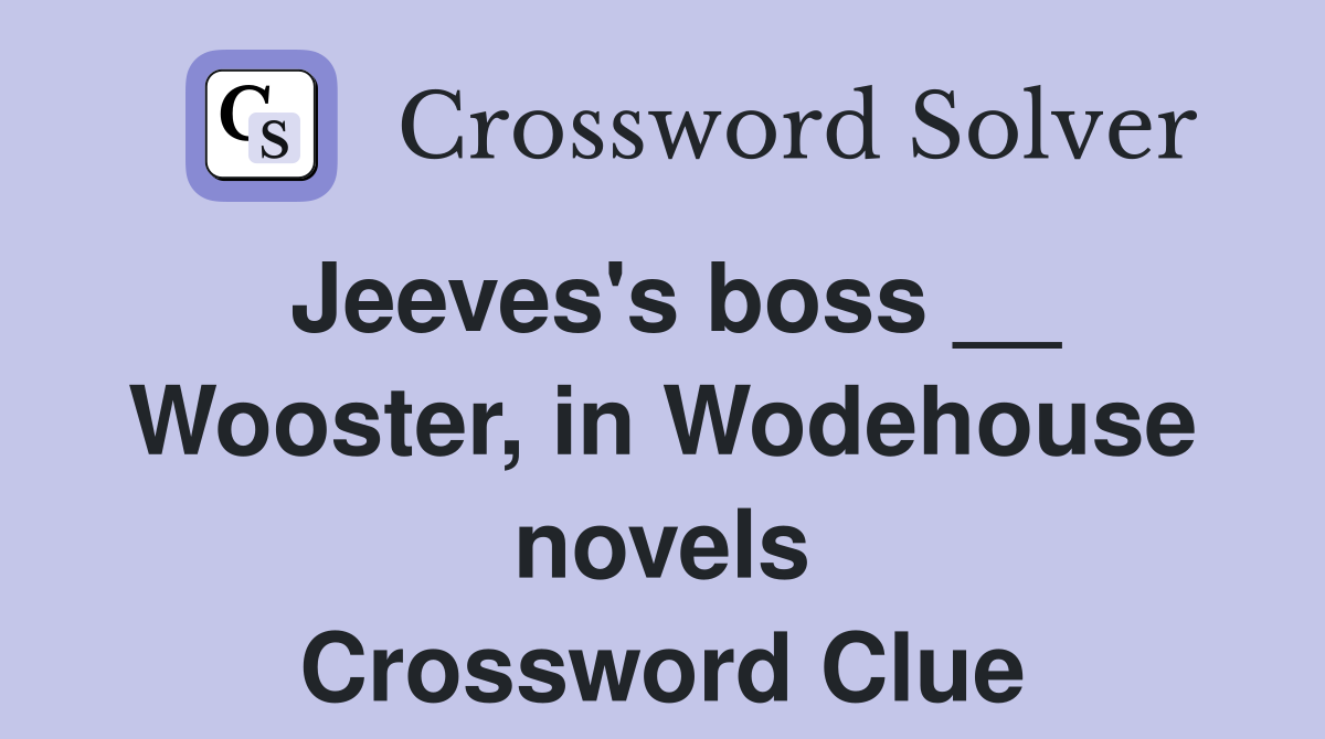 Jeeves #39 s boss Wooster in Wodehouse novels Crossword Clue Answers