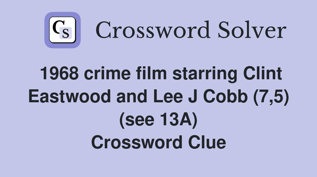 1968 crime film starring Clint Eastwood and Lee J Cobb (7 5) (see 13A