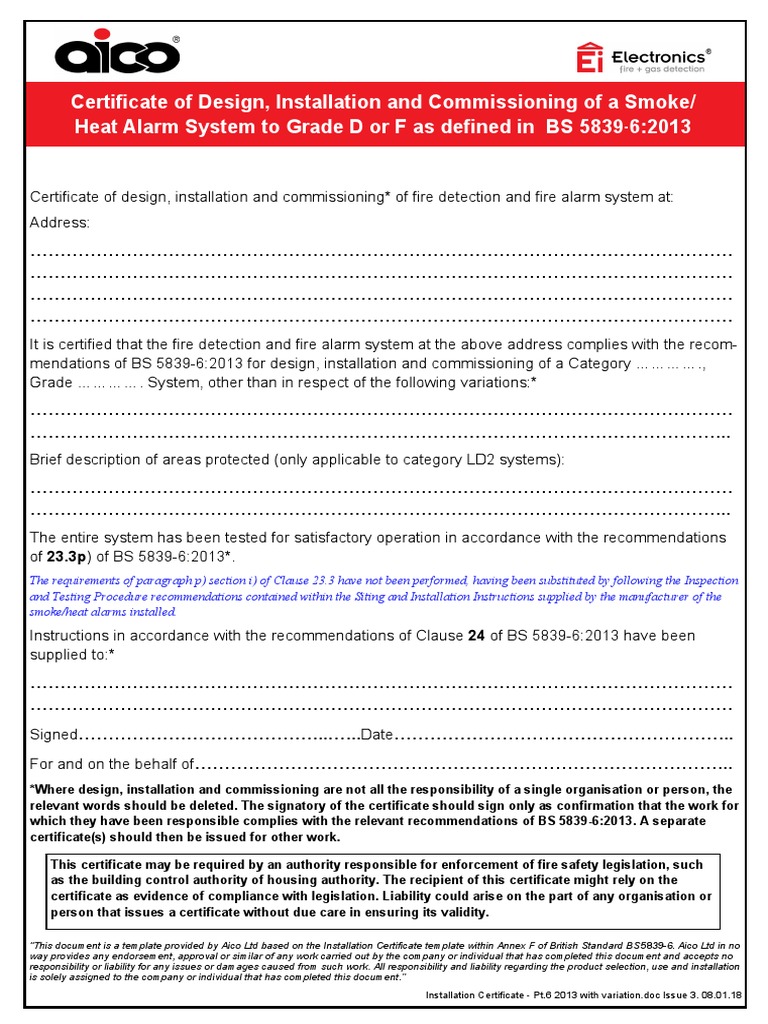 Smoke and Heat Alarm Installation Certificate Issue 3 PDF Justice