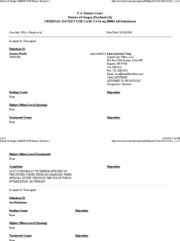 U S District Court District of Oregon (Portland (3) ) CRIMINAL DOCKET