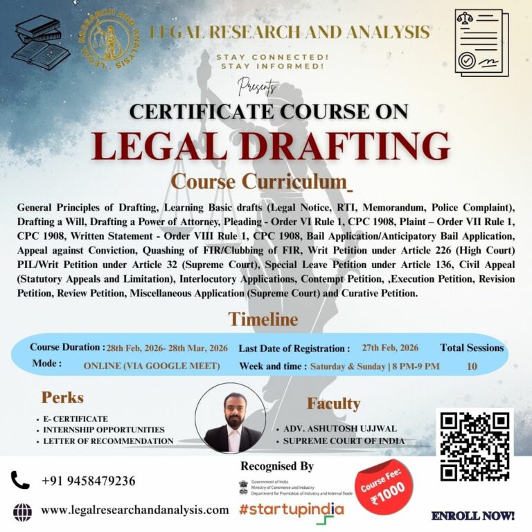 Online Certificate Course on Legal Drafting Legal Research And Analysis