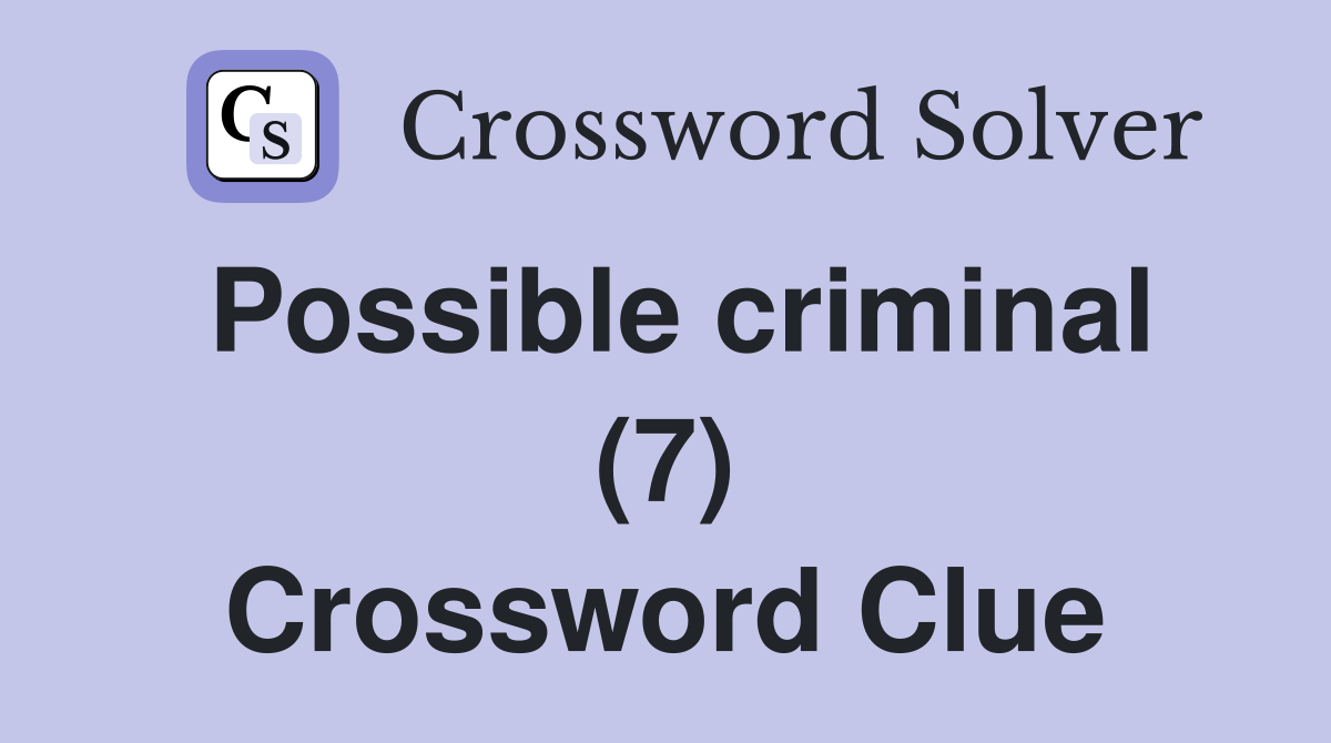 Possible criminal (7) Crossword Clue Answers Crossword Solver