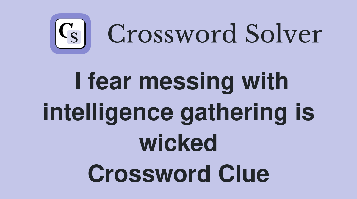 I fear messing with intelligence gathering is wicked Crossword Clue