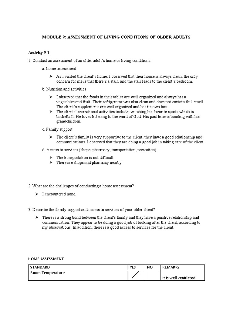 Assessment of Living Conditions of Older Adults PDF Vitamin Foods