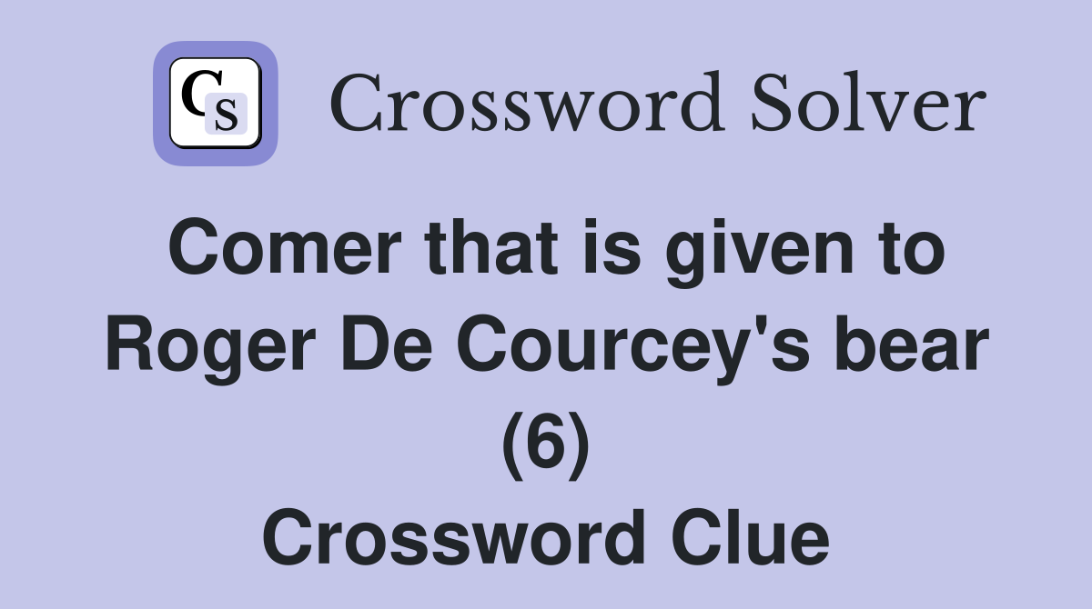 Comer that is given to Roger De Courcey #39 s bear (6) Crossword Clue