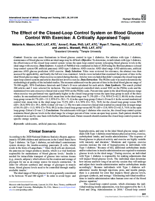 (PDF) The Effect of the Closed Loop Control System on Blood Glucose