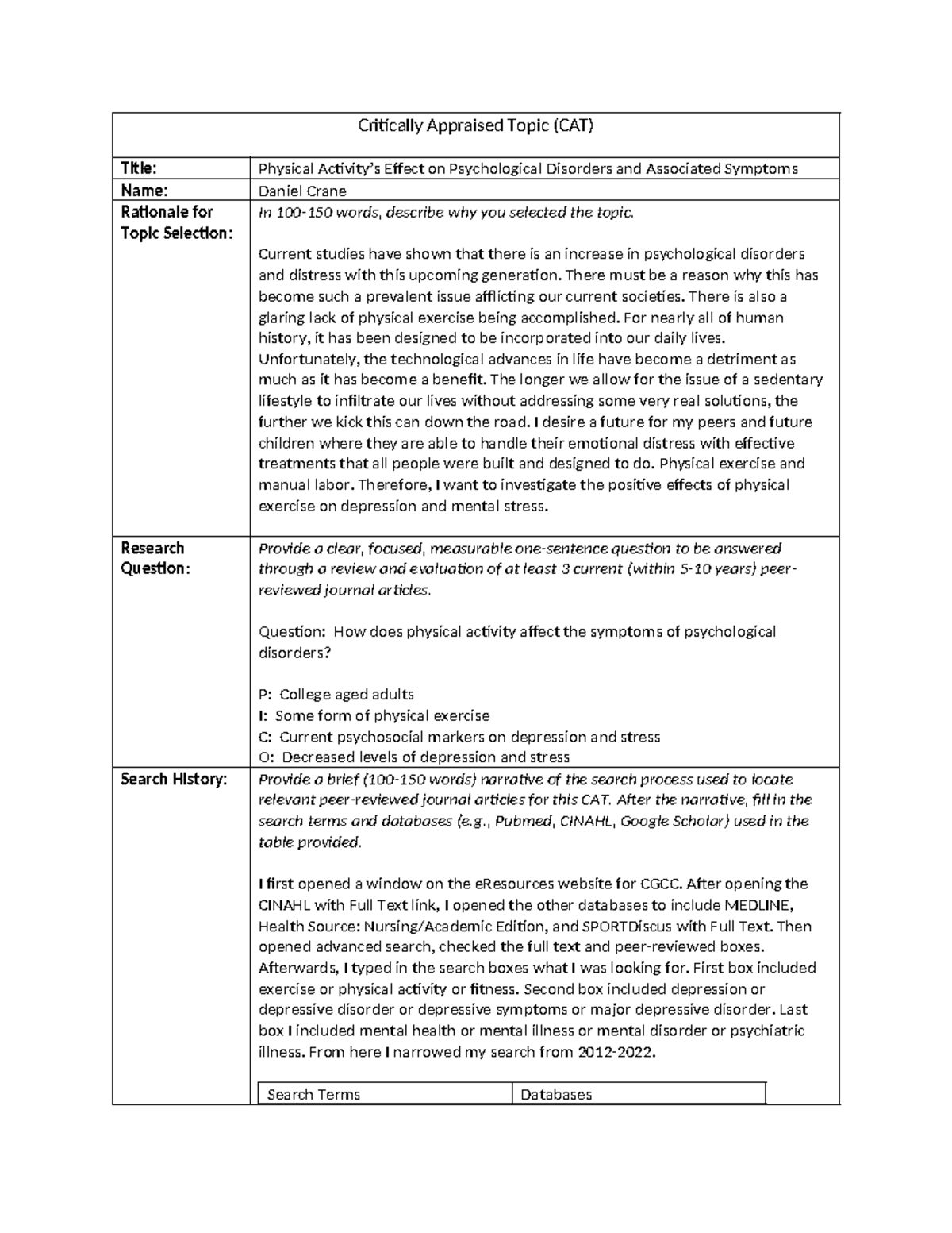 Fillable Online Critically Appraised Topic (CAT) form Fax Email Print