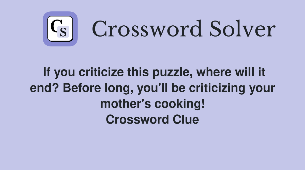 If you criticize this puzzle where will it end? Before long you ll be