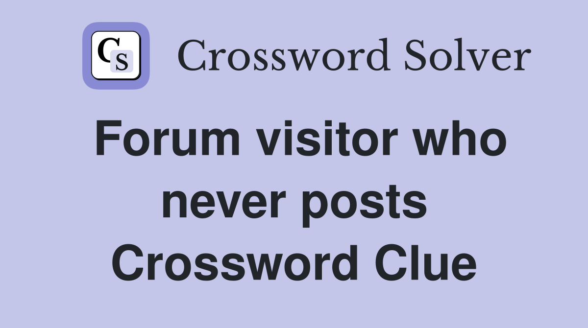 Forum visitor who never posts Crossword Clue Answers Crossword Solver