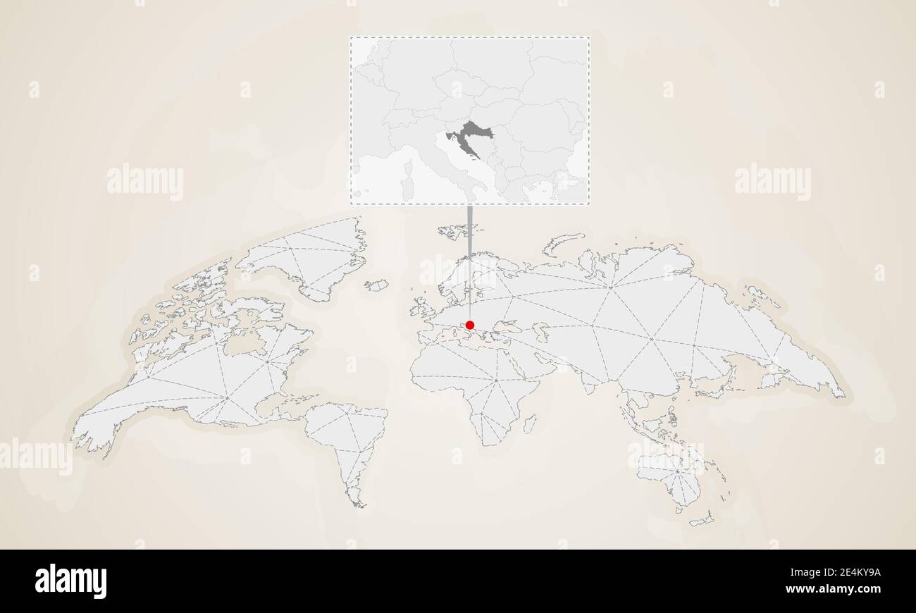 Map of Croatia with neighbor countries pinned on world map Abstract