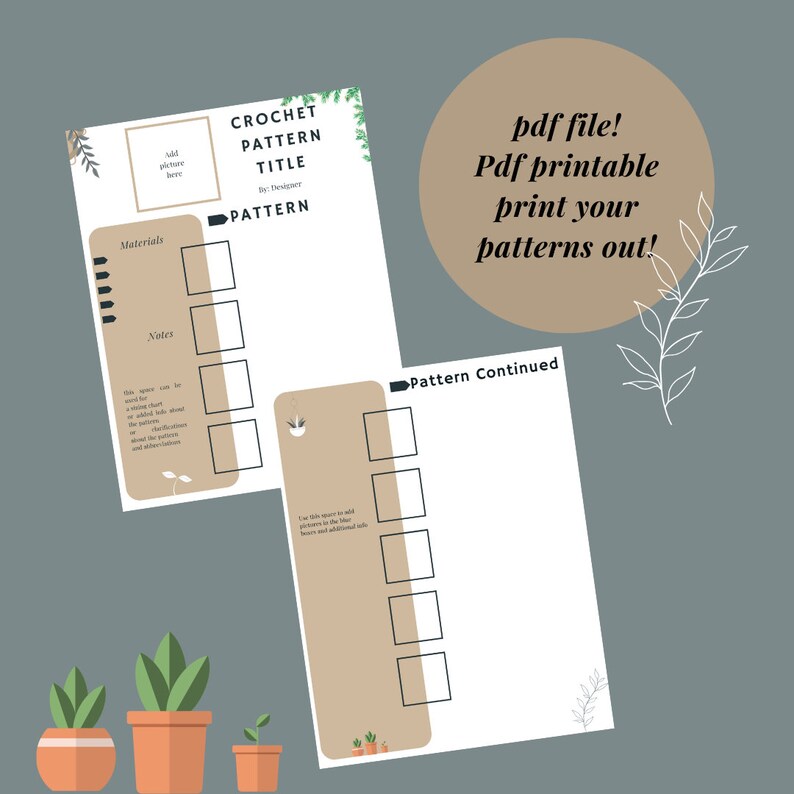 Neutral Plant Crochet Pattern Template Canva Pattern Template Crochet