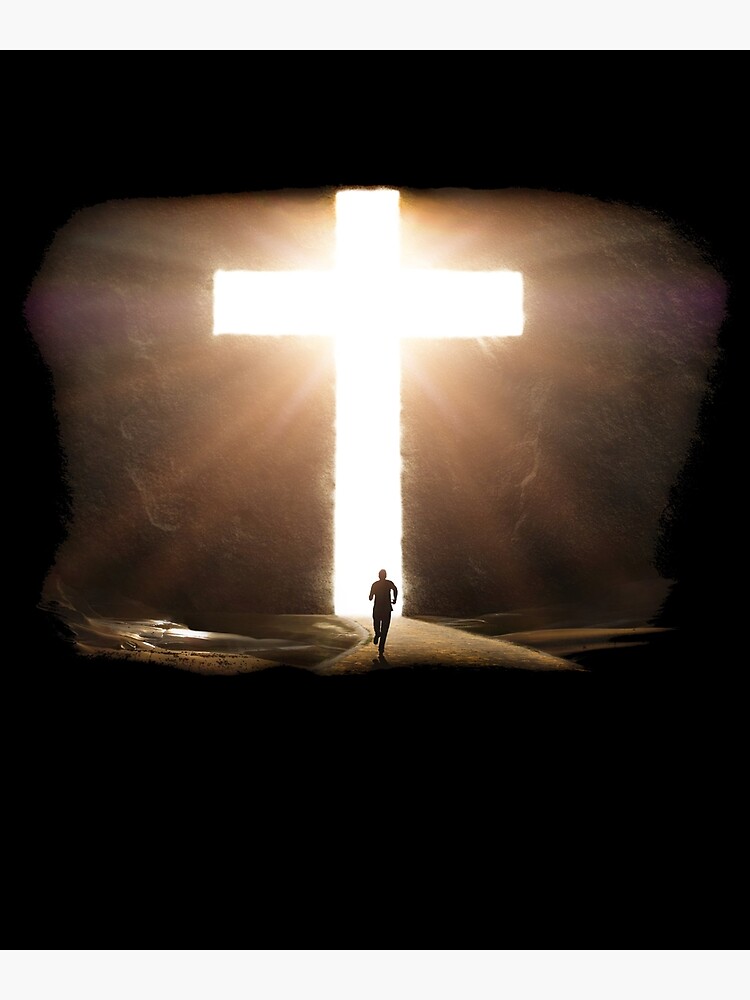 quot Man Running to Glowing Christian Cross of Jesus Christ in the Rock
