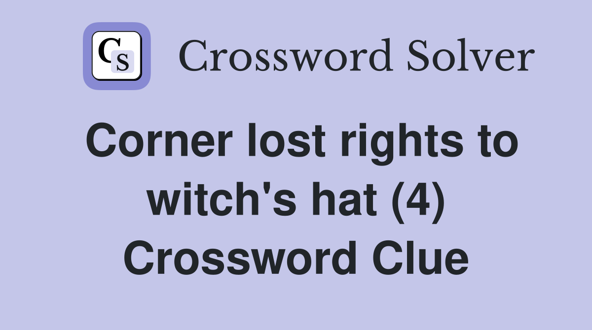 Corner lost rights to witch #39 s hat (4) Crossword Clue Answers
