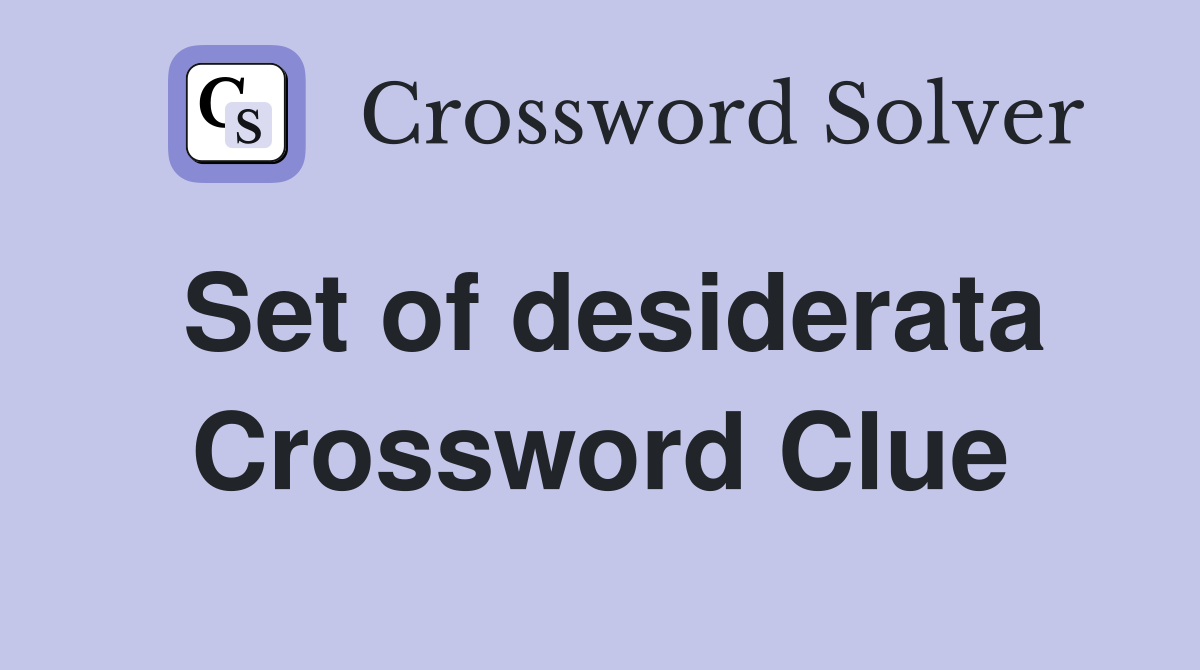 Set of desiderata Crossword Clue Answers Crossword Solver