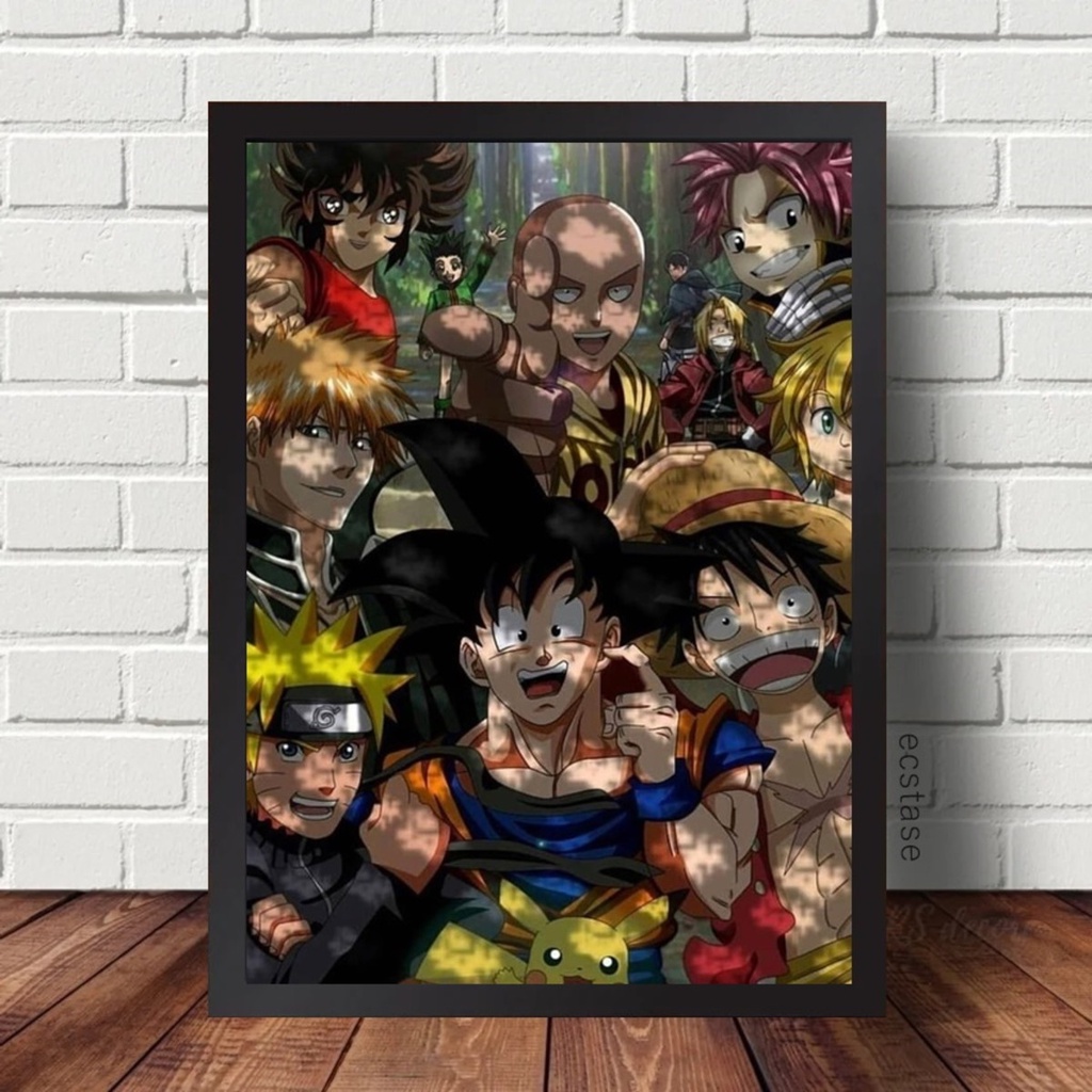 Quadro Decorativo Animes Crossover Naruto One piece Goku mwc Shopee