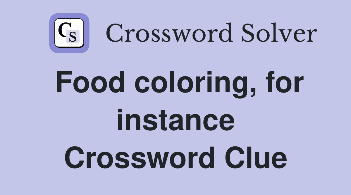 Food coloring for instance Crossword Clue Answers Crossword Solver