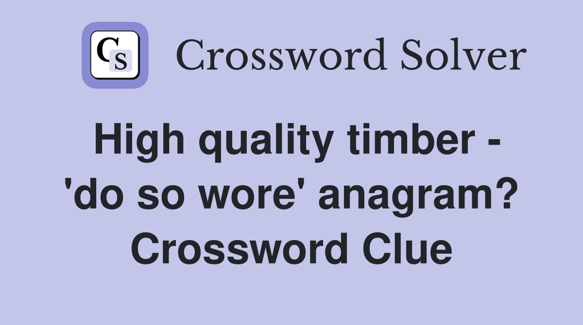 High quality timber #39 do so wore #39 anagram? Crossword Clue Answers