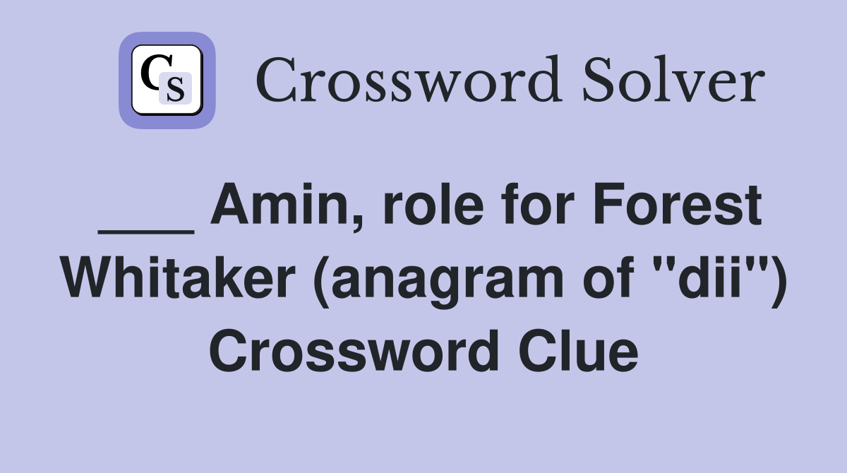 Amin role for Forest Whitaker (anagram of quot dii quot ) Crossword Clue