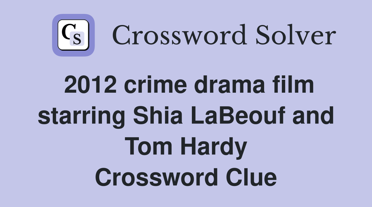 2012 crime drama film starring Shia LaBeouf and Tom Hardy Crossword