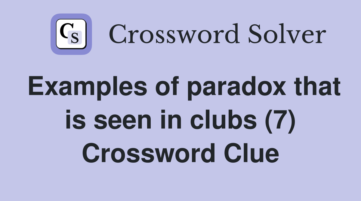 Examples of paradox that is seen in clubs (7) Crossword Clue Answers