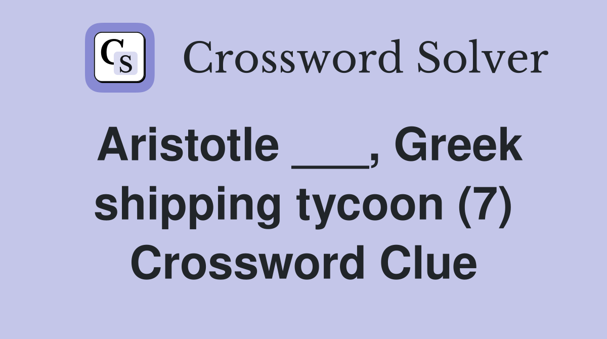 Aristotle Greek shipping tycoon (7) Crossword Clue Answers