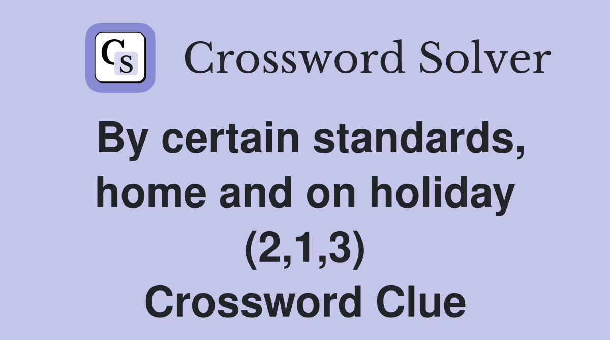 By certain standards home and on holiday (2 1 3) Crossword Clue
