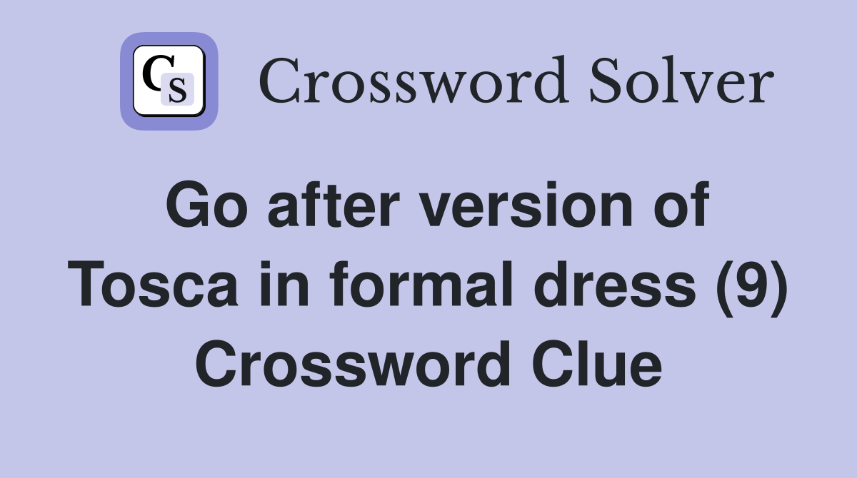 Go after version of Tosca in formal dress (9) Crossword Clue Answers