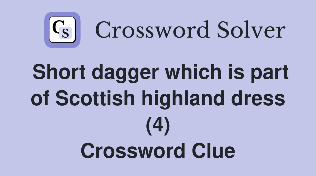 Short dagger which is part of Scottish highland dress (4) Crossword