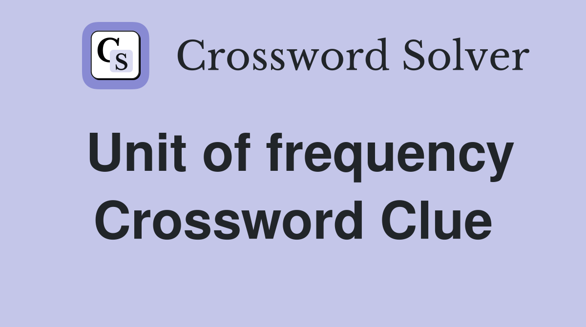 Unit of frequency Crossword Clue Answers Crossword Solver