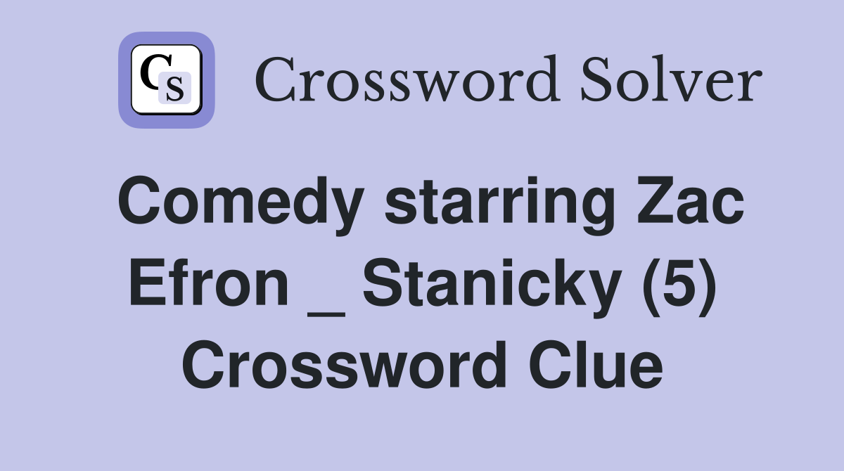 Comedy starring Zac Efron Stanicky (5) Crossword Clue Answers