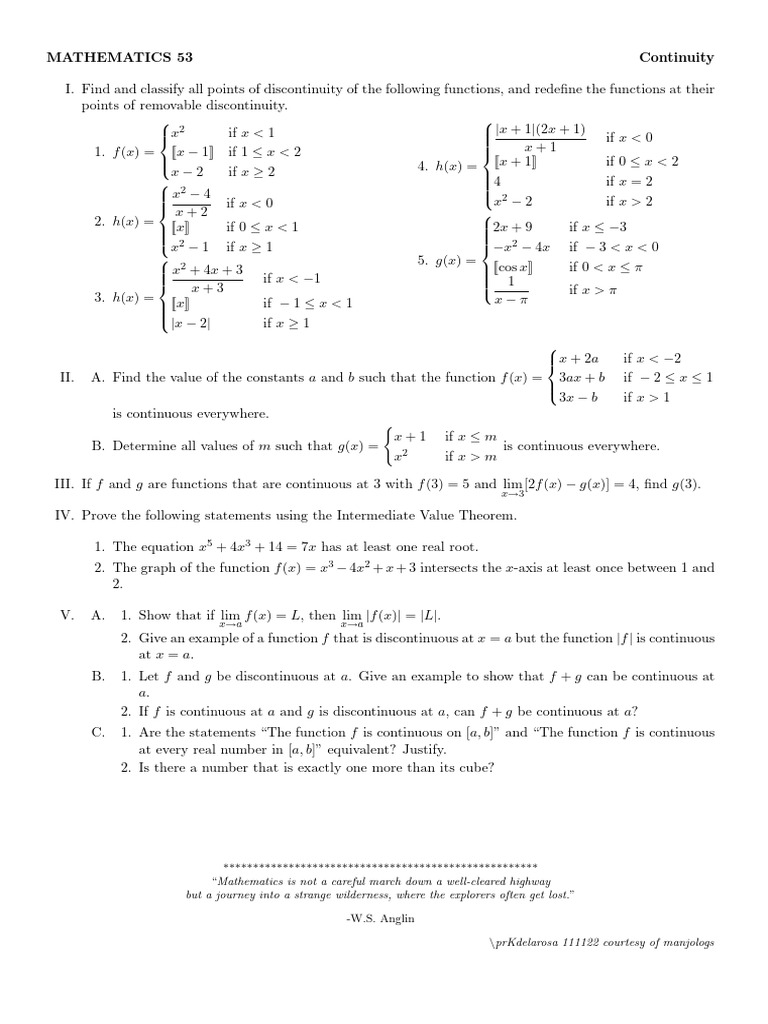 Solved Problems On Limits and Continuity PDF Worksheets Library