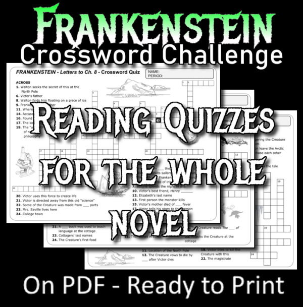 FRANKENSTEIN Crossword Puzzle Reading Quizzes (worksheets) No Prep