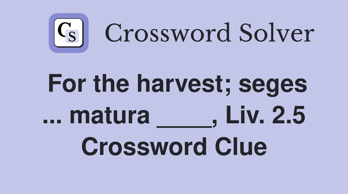 For the harvest seges matura Liv 2 5 Crossword Clue