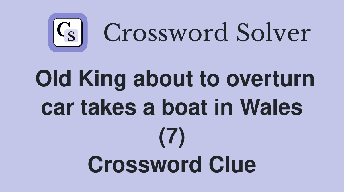 Old King about to overturn car takes a boat in Wales (7) Crossword