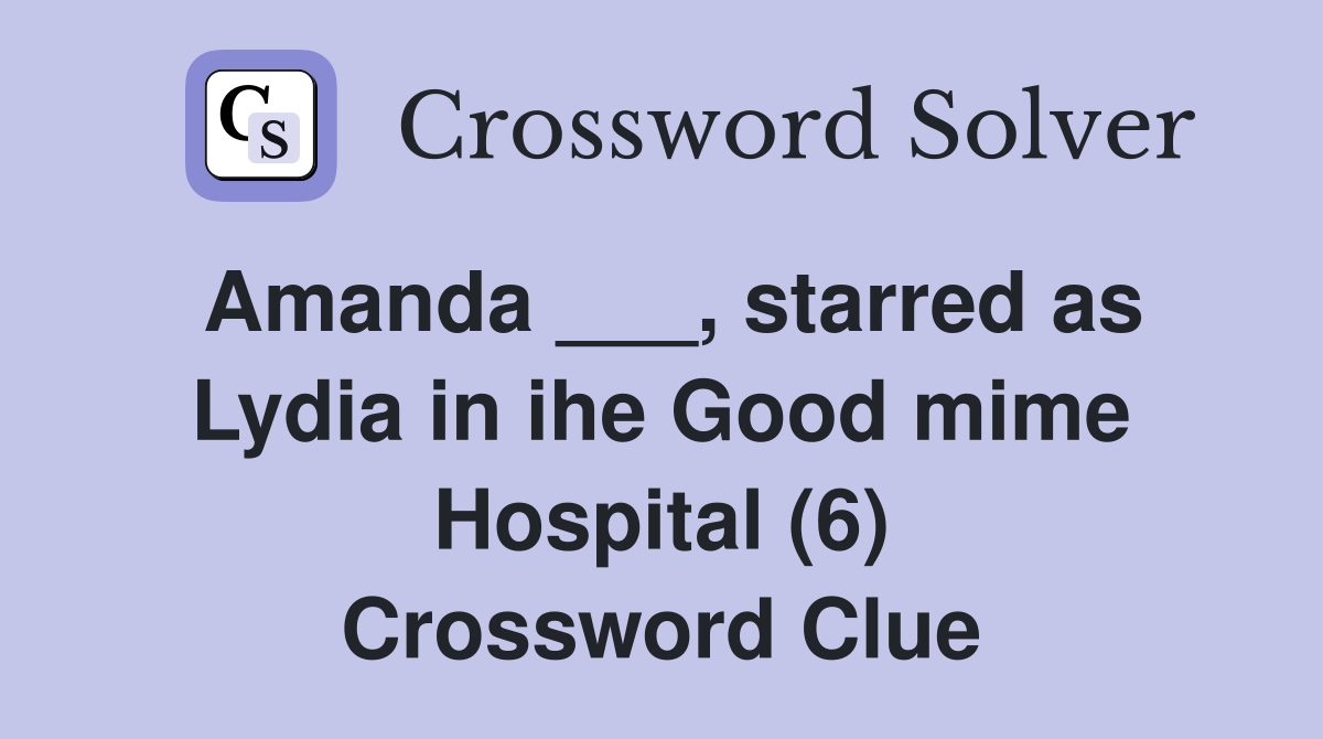 Amanda starred as Lydia in ihe Good mime Hospital (6) Crossword