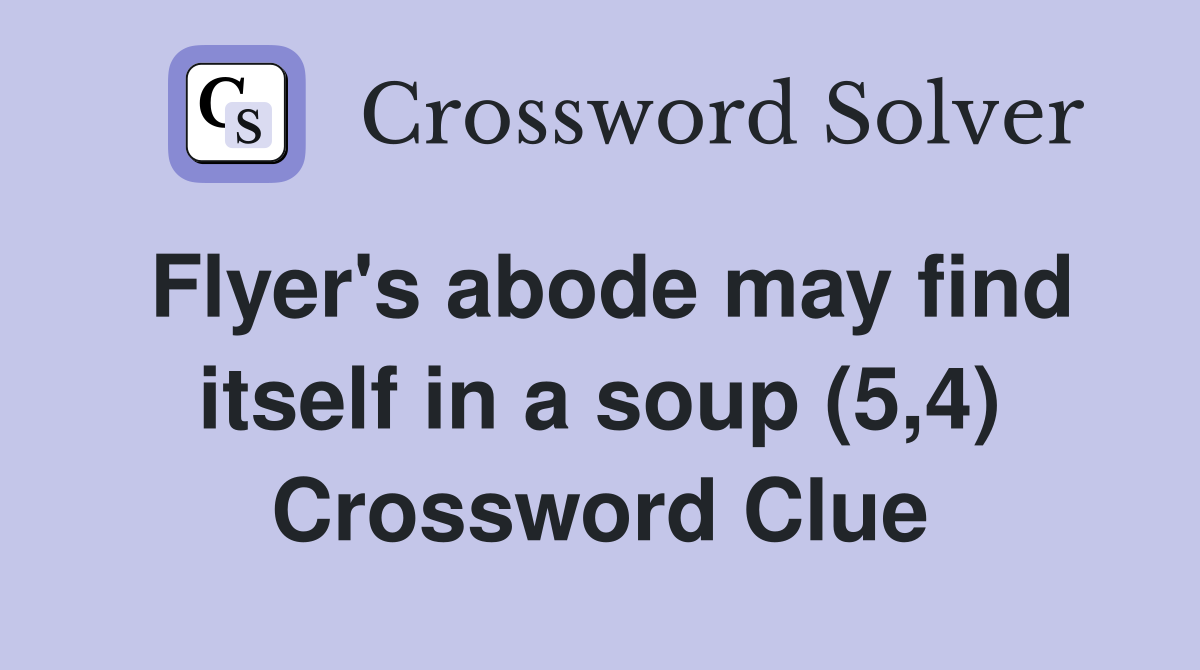 Flyer #39 s abode may find itself in a soup (5 4) Crossword Clue Answers