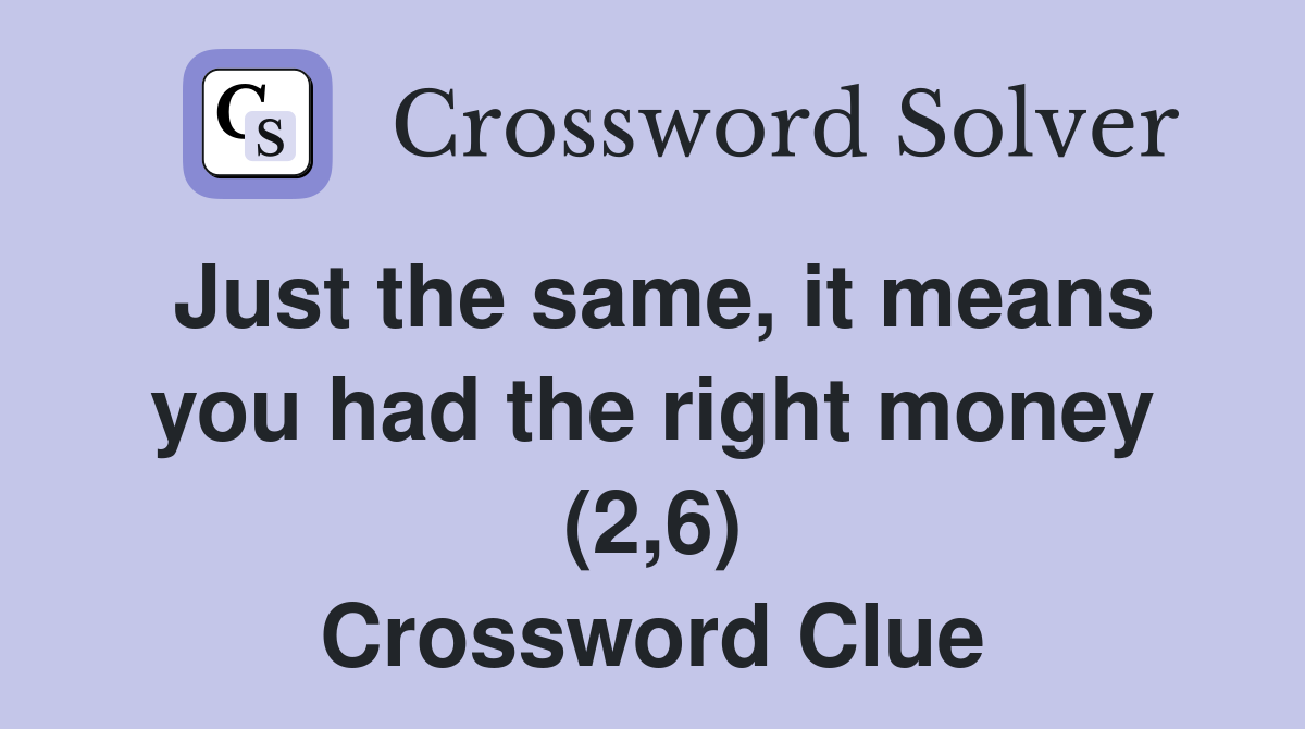 Just the same it means you had the right money (2 6) Crossword Clue