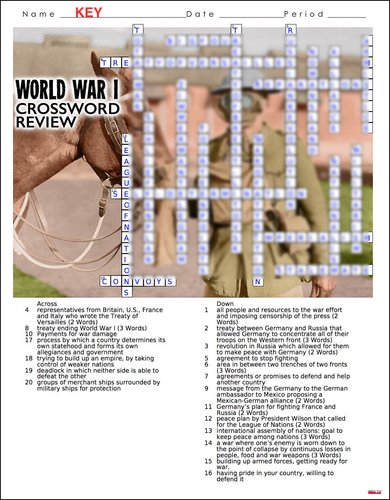 World War I Crossword Puzzle Review (WW1) Teaching Resources
