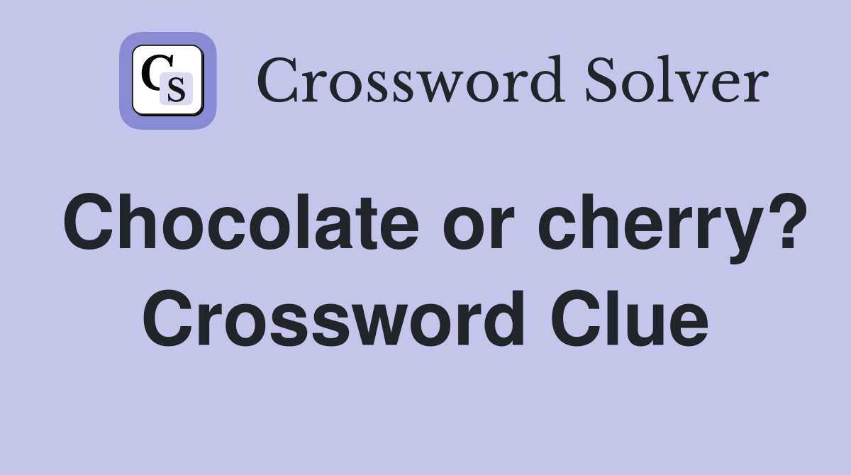 Chocolate or cherry? Crossword Clue Answers Crossword Solver