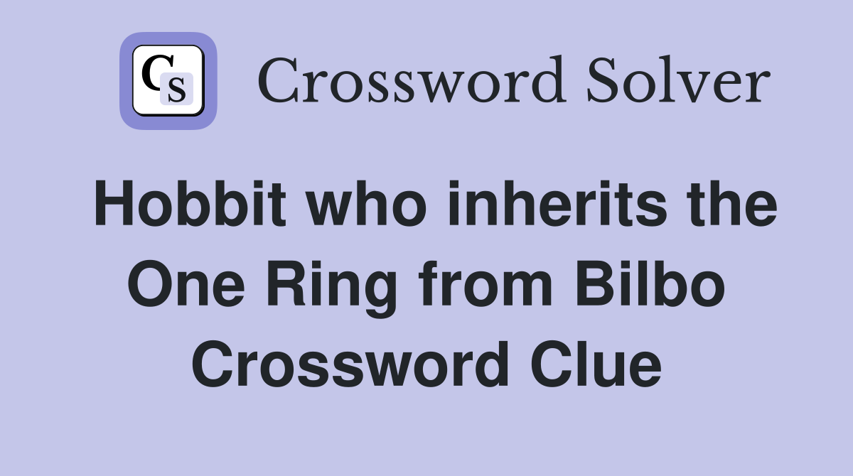 Hobbit who inherits the One Ring from Bilbo Crossword Clue Answers