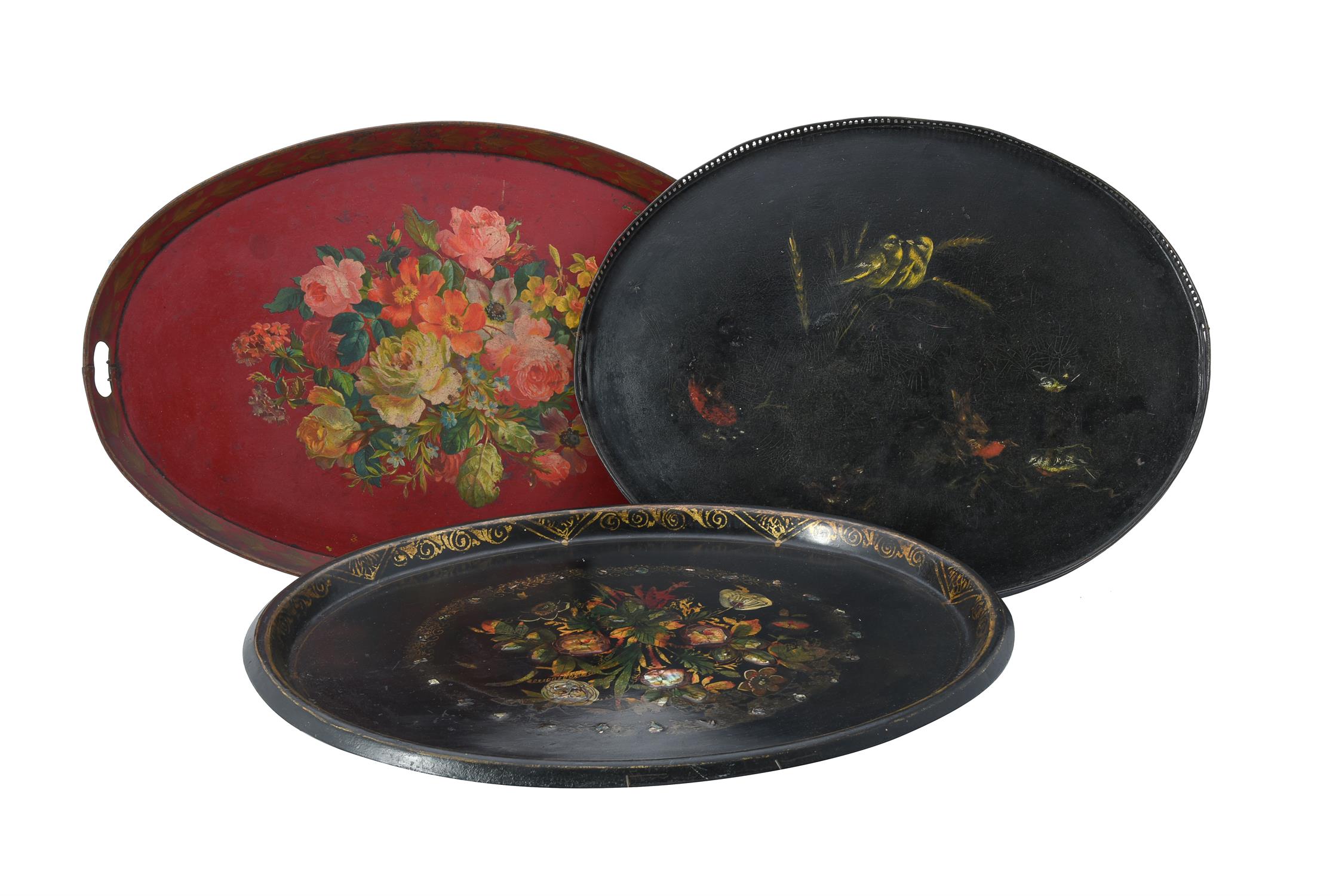 Y A painted tinware (toleware) tray 19th century of oval form and