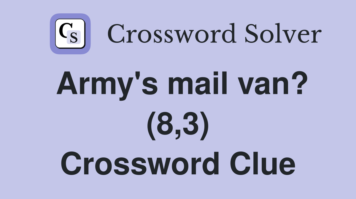 Army #39 s mail van? (8 3) Crossword Clue Answers Crossword Solver