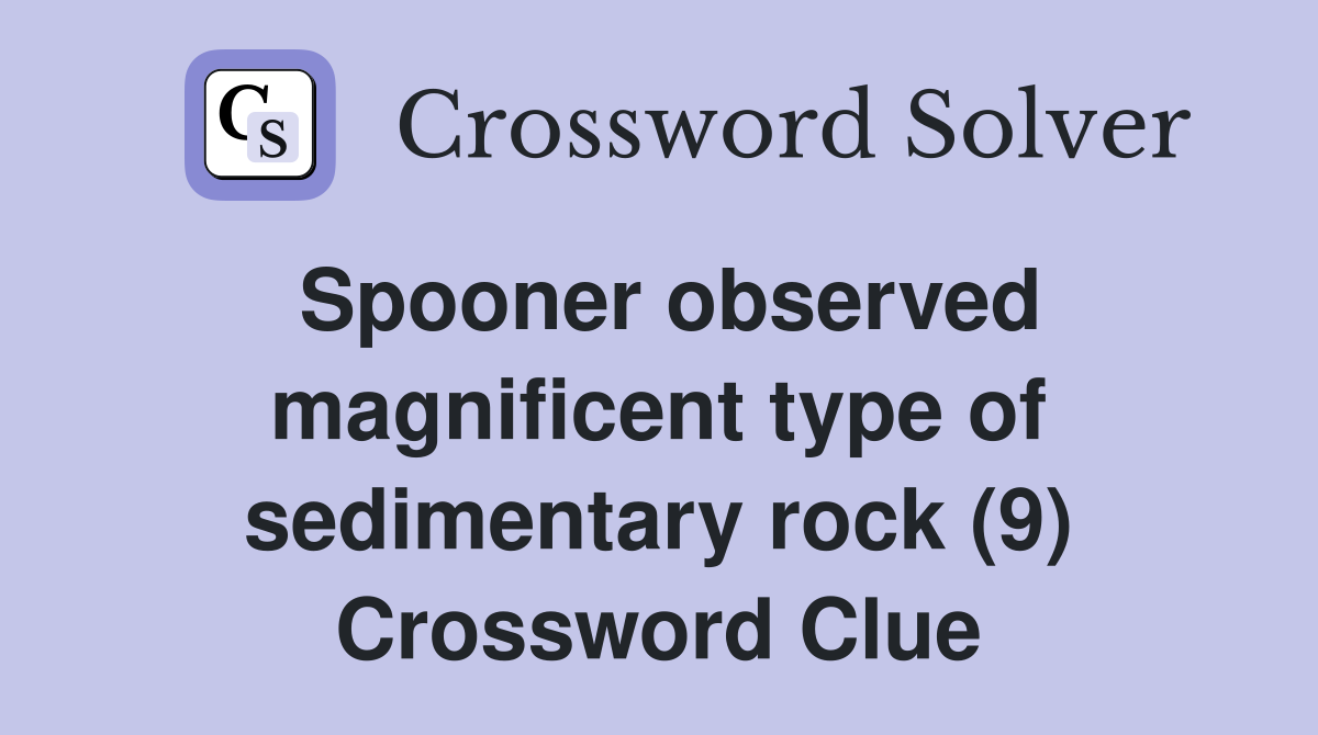 Spooner observed magnificent type of sedimentary rock (9) Crossword