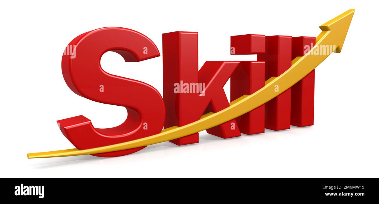 Skill Ability Knowledge Crossword Puzzle on 3D Cubes Background Stock