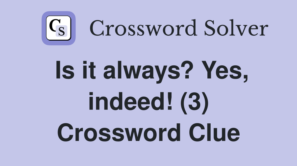 Is it always? Yes indeed (3) Crossword Clue Answers Crossword Solver