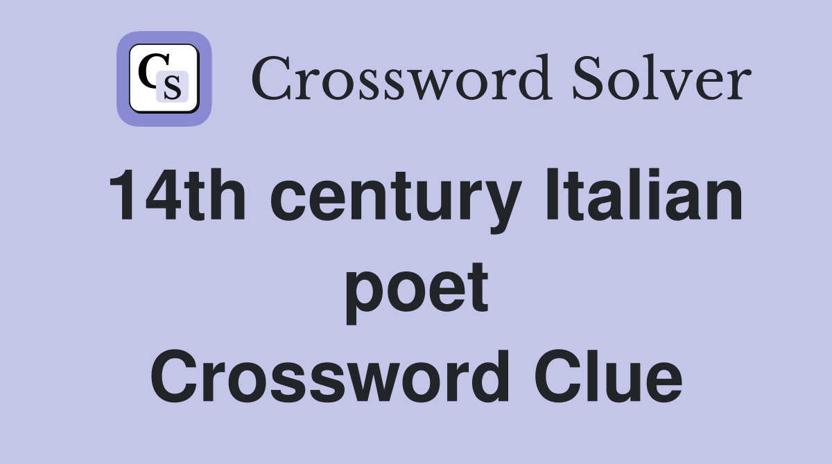 14th century Italian poet Crossword Clue Answers Crossword Solver