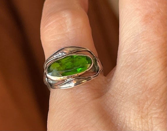 Very very old French coin ring with Oval veridian gre Gem