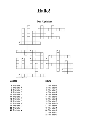 Alphabet puzzle in German crossword Teaching Resources