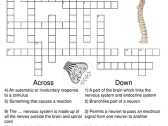 Nervous System Crossword With Answer Key by MarleyMegB TPT
