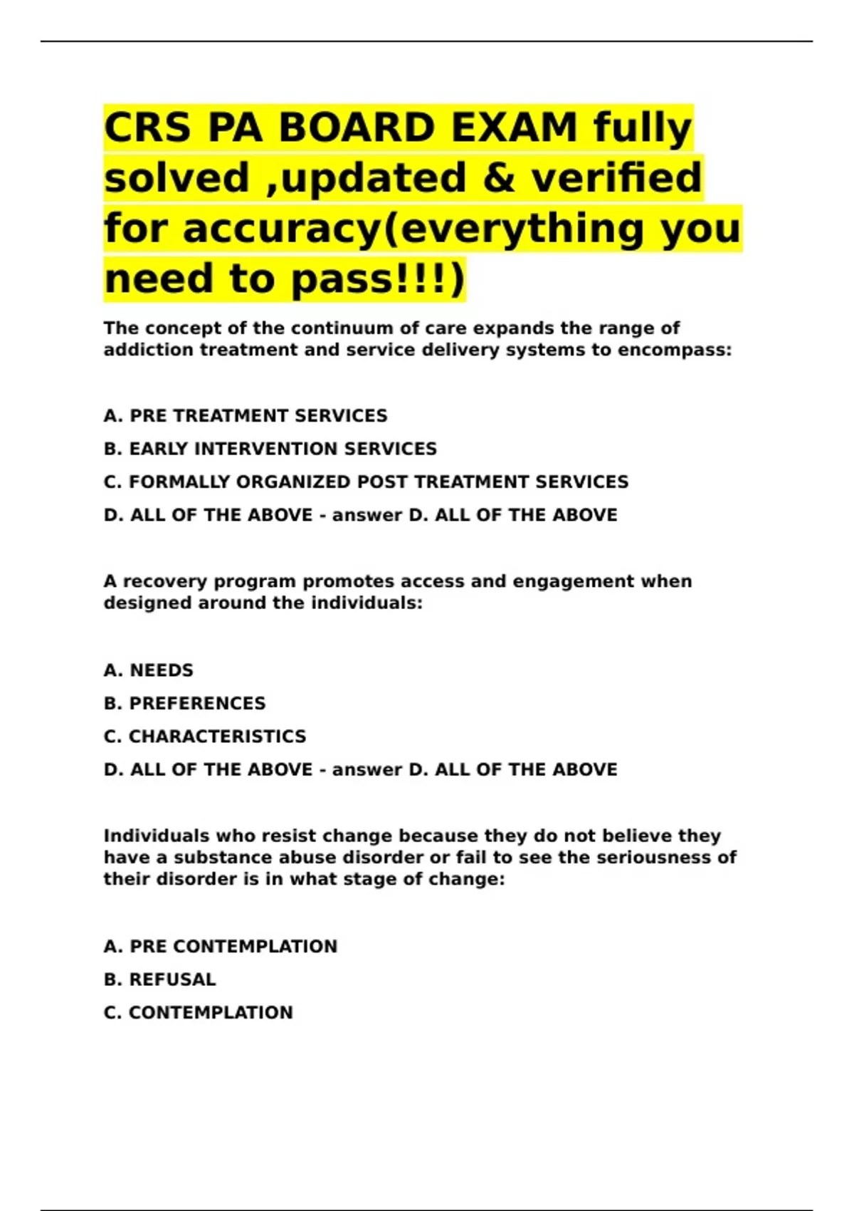 CRS PA BOARD EXAM fully solved updated verified for accuracy